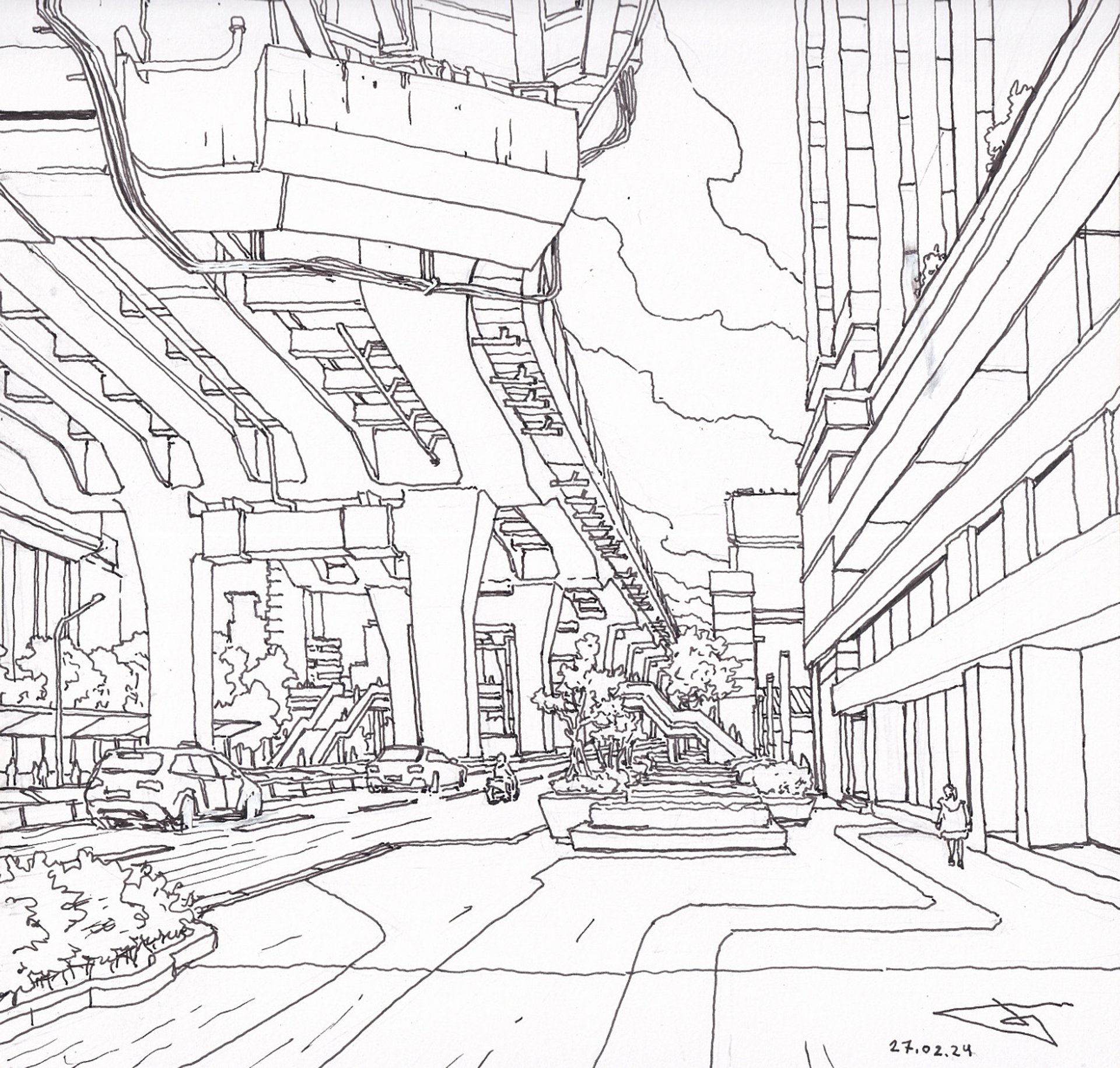 Live demonstration & explanation of key concepts (perspective, composition, narrative, line, space, etc.)